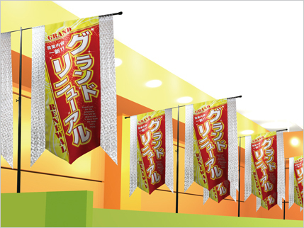 縦方向に加え、横方向にも伸縮する島上タペストリー用ポール!