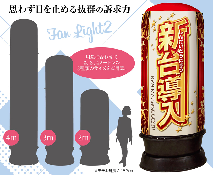 ・土台部分の送風機から、常にメディア内に空気を送り込むことで自立させる置き型看板です。
